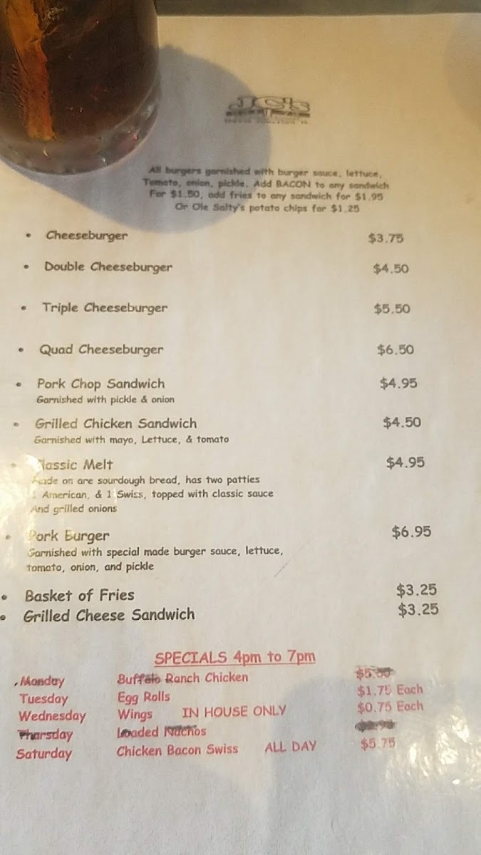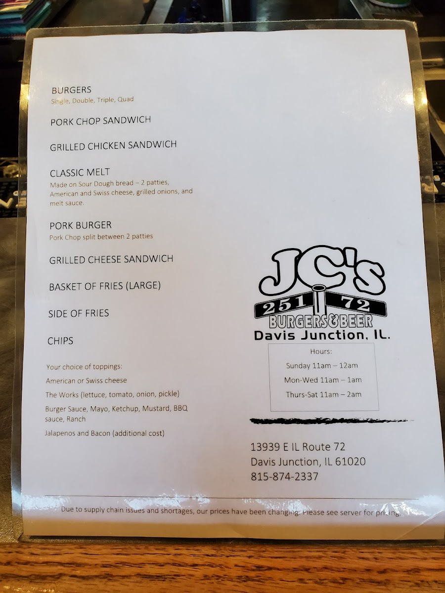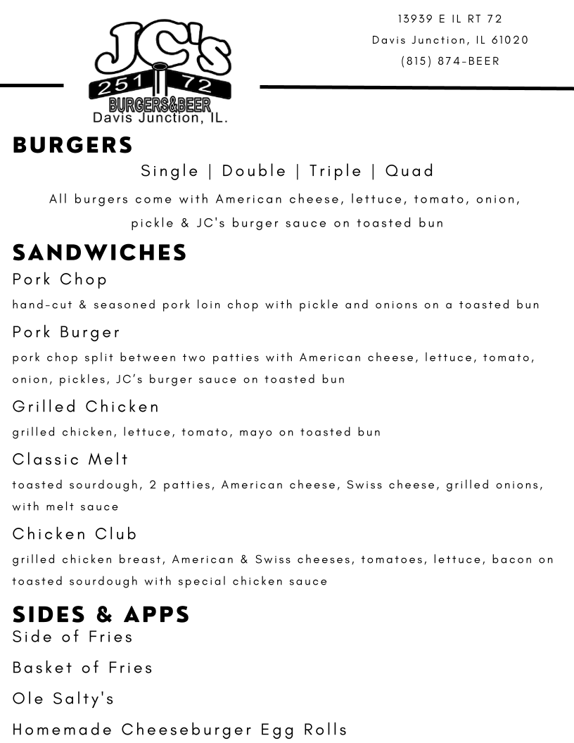 JC's Junction Corner Menu